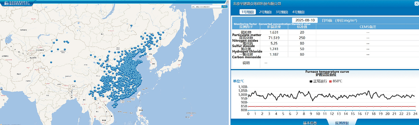 The evolution of China’s incineration industry is a story of both necessity and innovation. The first experimental plant opened in Shenzhen back in 1985, but it faltered because Chinese household waste then was too wet and low-calorie (food scraps dominated) to burn efficiently. As living standards improved and waste became “drier” (more paper, plastics, packaging), incineration became more viable in the 2000s . The government encouraged private investment in these projects by 2005, offering subsidies and guaranteed electricity purchases. A decade later, strengthened environmental regulations forced incinerators to install real-time emissions monitoring and publicly display their pollution data, aiming to allay fears of invisible toxins. By 2020, a national online platform was live-streaming incinerator smokestack readings across the country – a level of transparency almost unheard of in earlier years.