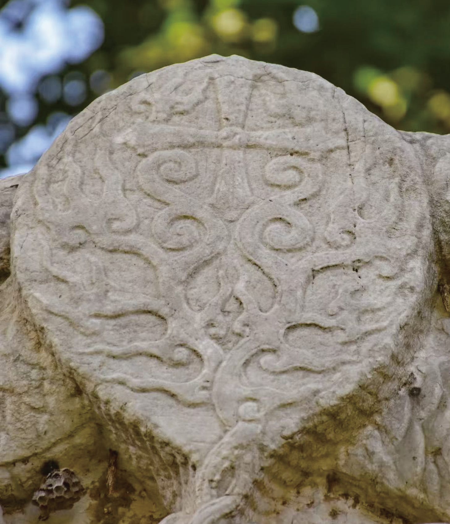In 1931, two carved stones bearing crosses and lotus motifs were unearthed here—artifacts that would reveal the site’s Christian past. Each cube-shaped stone carries a relief of a cross rising from clouds and lotus petals, surrounded by inscriptions in classical Syriac, the liturgical language of the Church of the East. The text reads: