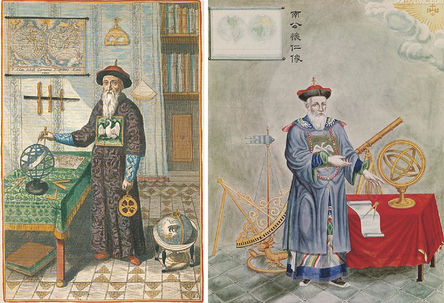 When viewed through the prism of the Jesuits’ historical legacy, these recent developments are not unprecedented—they are, in fact, a repetition of a largely forgotten golden age. Between the late Ming and mid-Qing dynasties (late 1500s to mid-1700s), Jesuit missionaries enjoyed nearly a century of influence and favor, especially under the reign of the Kangxi Emperor (康熙帝, Born in 1654, he ruled China from 1661 to 1722 and is often compared to France’s Louis XIV for his long reign, centralizing power, and fostering of science, culture, and diplomacy). During this time, a remarkably balanced exchange between China and the West flourished—an era often omitted or reinterpreted through the lens of modern colonial trauma or Western civilizational superiority.